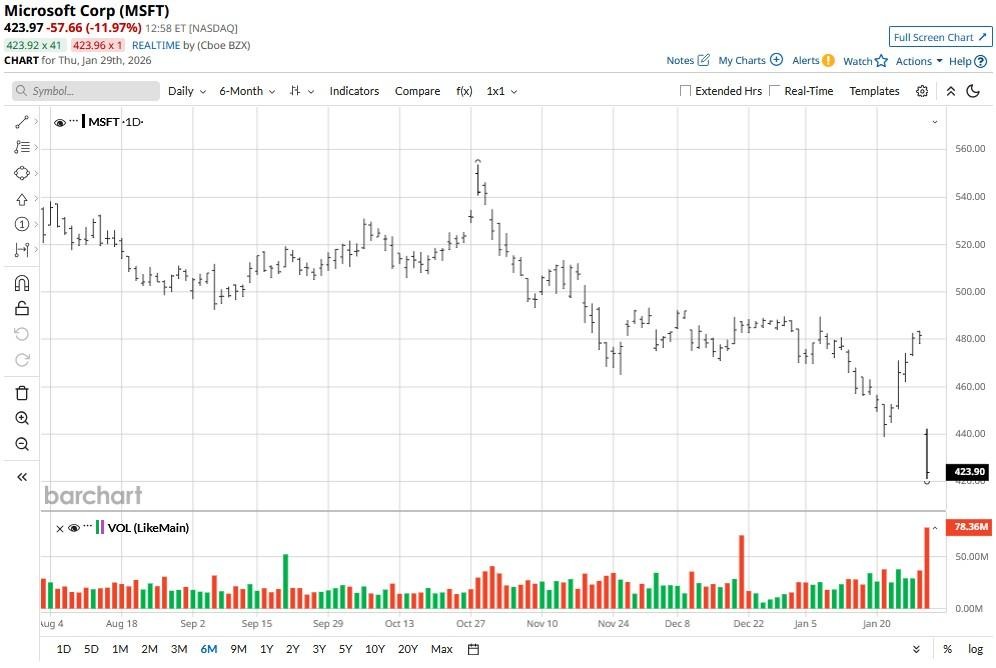 The selloff has even pushed Microsoft stock decisively below its 50-day moving average (MA), indicating continued pressure could follow in the weeks ahead.