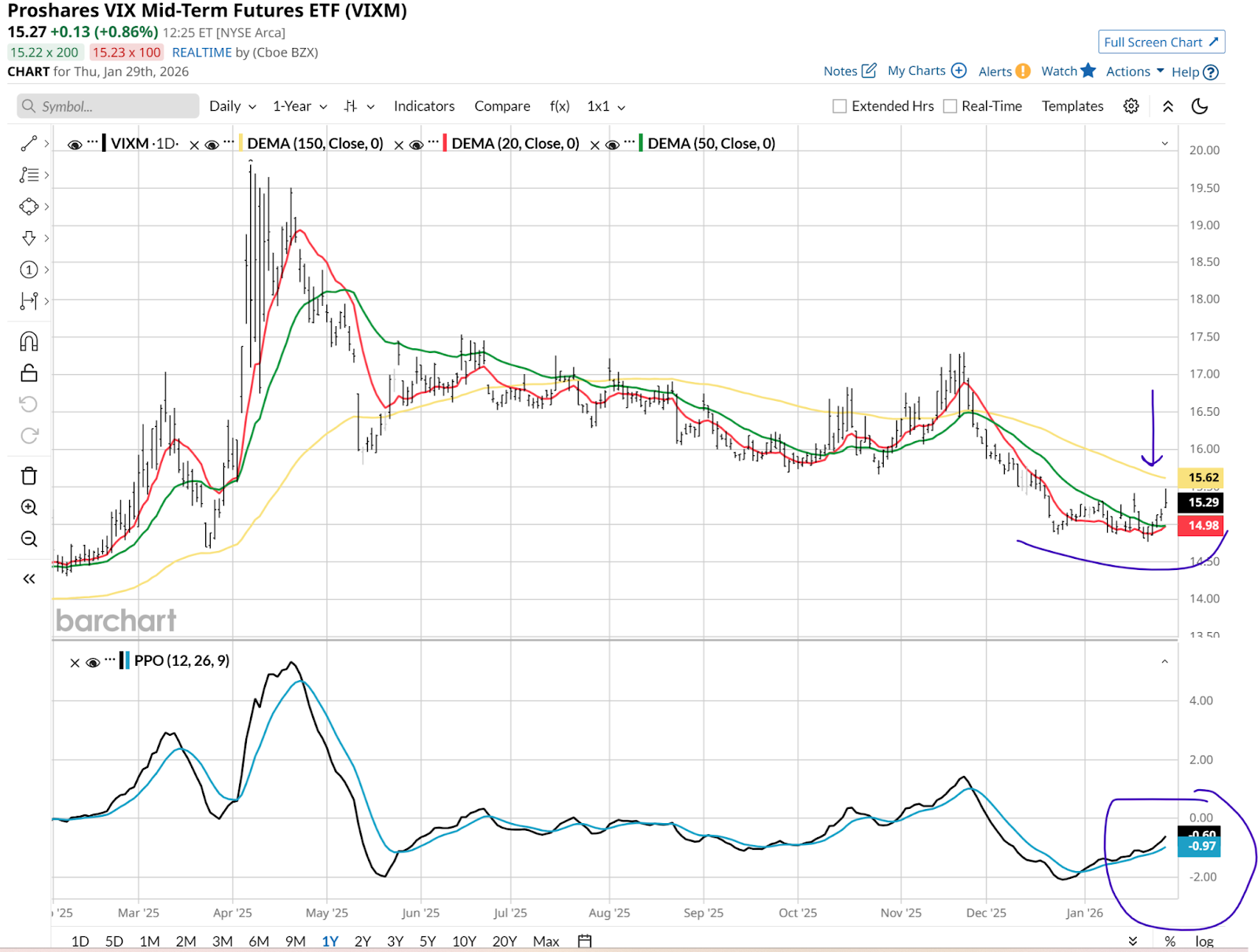 This mid-term approach provides a unique advantage in 2026: it hedges against both sudden market shocks and the more dangerous risk of sustained high volatility. Short-term VIX funds are a big part of my arsenal. However, I track my portfolio every day, most of the day. And those short-term VIX ETFs suffer immensely from time decay because the first-month futures contracts are usually much more expensive than the spot VIX. This creates a constant downward pressure on the fund's price.