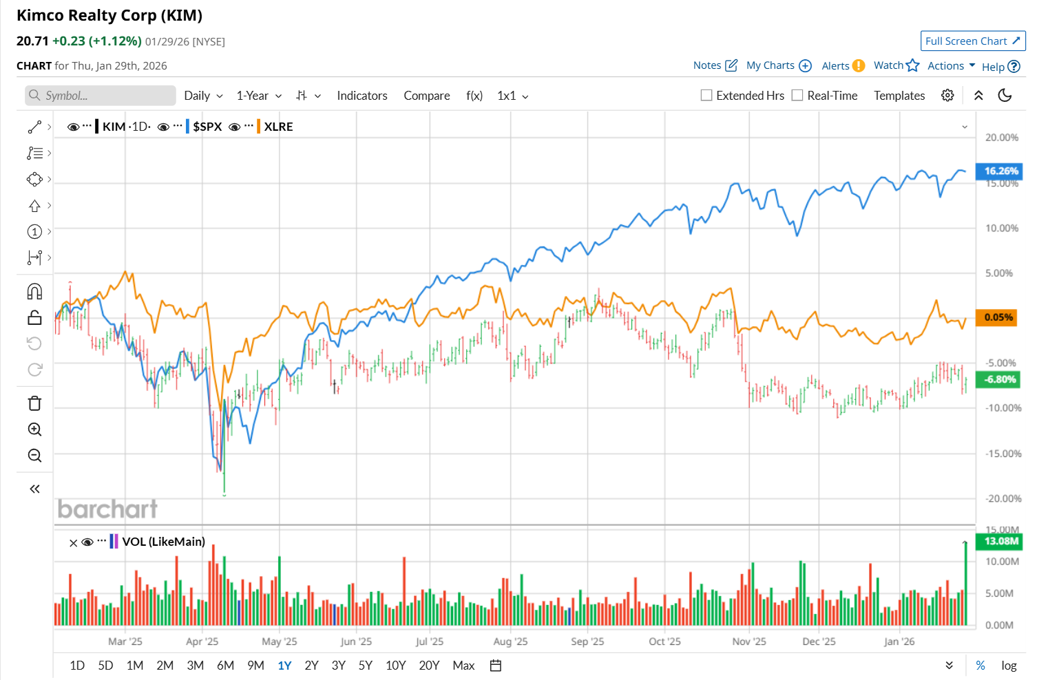 Narrowing the focus, KIM has underperformed the State Street Real Estate Select Sector SPDR ETF (XLRE), which surged 1% over the past 52 weeks and 2.5% on a YTD basis.