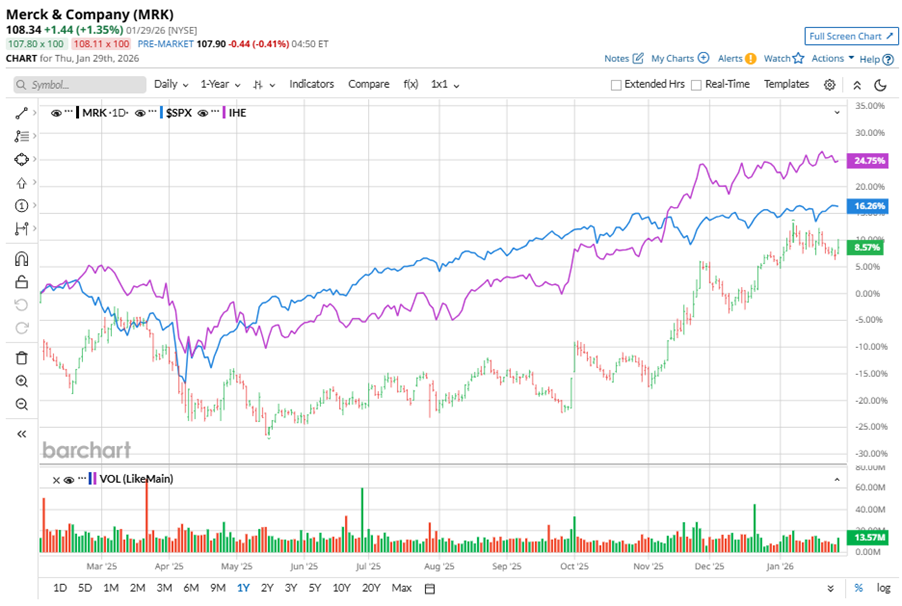 Shares of this pharmaceutical giant have underperformed the broader market over the past year. MRK has gained 10.2% over this time frame, while the broader S&P 500 Index ($SPX) has rallied nearly 15.4%. However, in 2026, MRK stock is up 2.9%, surpassing the SPX’s 1.8% rise on a YTD basis.