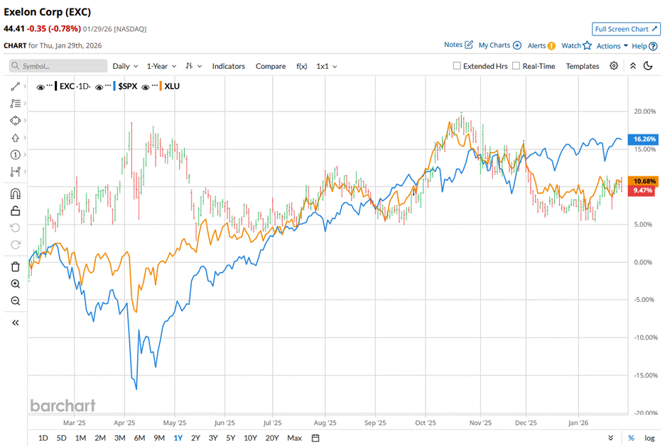 Shares of the electrical utility giant have lagged behind the broader market over the past year, but have slightly outperformed in 2026. EXC stock has surged 12.2% over the past 52 weeks and 1.9% on a YTD basis. In comparison, the S&P 500 Index ($SPX) has returned 15.4% over the past year and risen 1.8% in 2026.