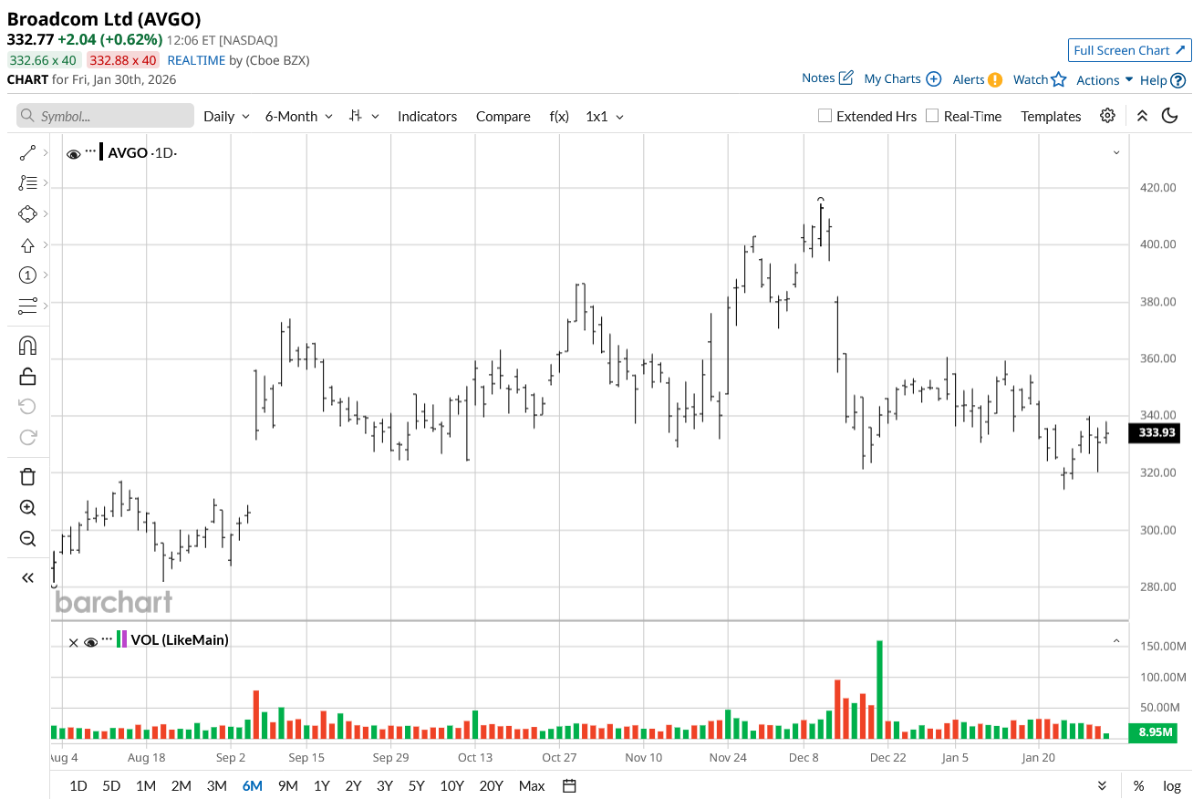 Longer-term, Broadcom shines brighter. Its six-month gain hit 10%, and 52-week returns reached 55%, significantly topping SRIT 25%. AI-driven chip demand fuels this resilience, positioning AVGO as a sector outperformer despite recent volatility.