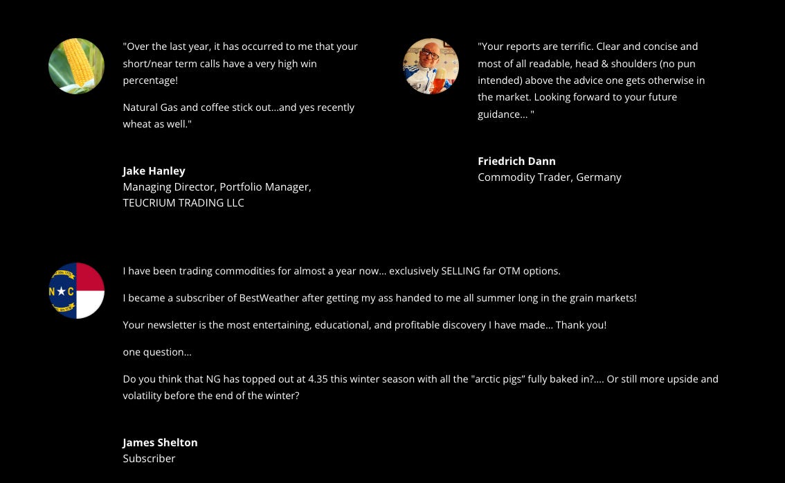 Meteorologist - Commodity Trading Advisor - Principal, Best Weather Inc. & Climate Predict - Publisher, Weather Wealth Newsletter