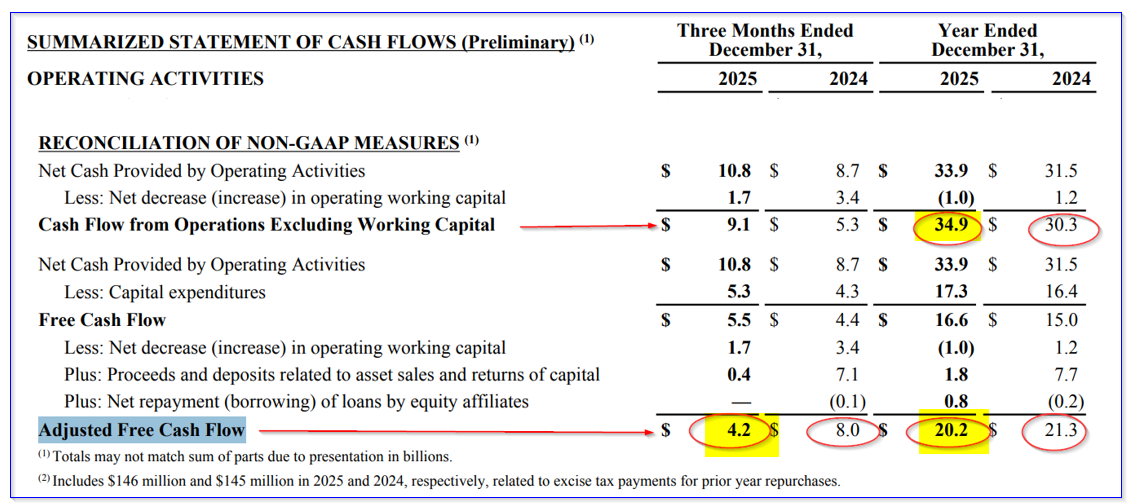 This decline was worse for Q4. Adj. FCF was $4.2 billion, vs. $8.0 billion last year, down 47.5% YoY. This can be seen on page 10 of the Q4 release.