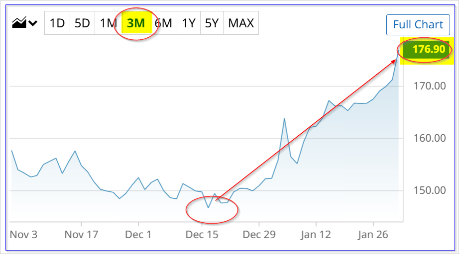 Moreover, since its recent low point of $146.75 on Dec. 16, 2025, CVX is up $30.05, a 20.5% gain in just a month and a half.
