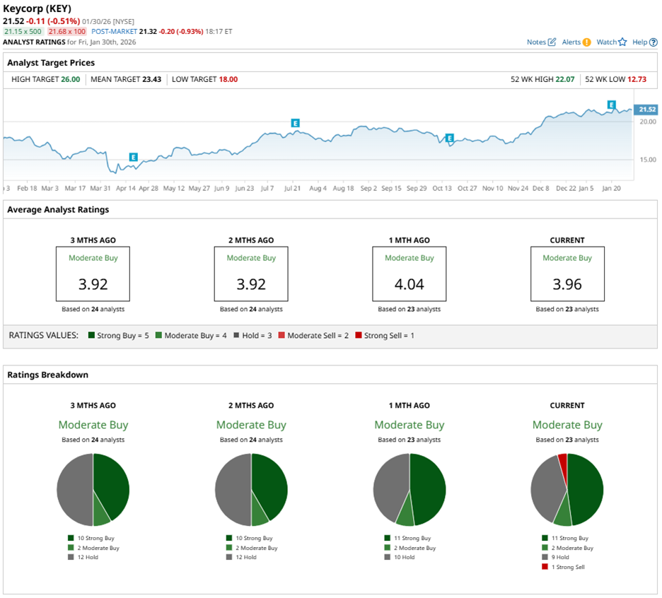 Price targets have followed suit, reflecting the recent earnings beat. On Thursday, Jan. 22, Argus raised its price target from $21 to $25, reaffirming its “Buy” rating on the stock. The adjustment came in response to KeyCorp’s Q4 2025 earnings, which surpassed Wall Street expectations and signaled robust operational momentum.