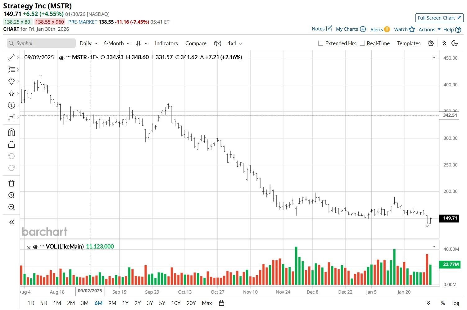 At the time of writing, MicroStrategy stock is down an alarming 68% versus its 52-week high.