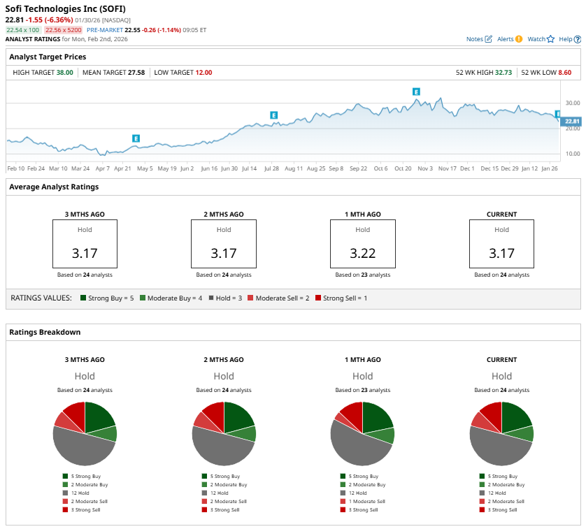 Wall Street analysts are still cautious on SOFI stock, maintaining a “Hold” consensus rating even after the company’s latest earnings report.