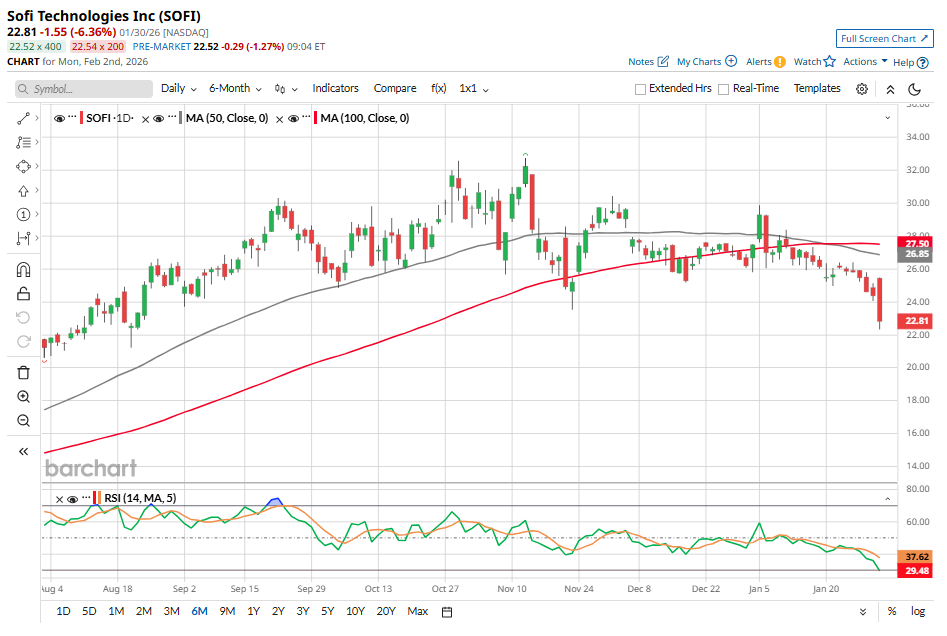 Despite these strong fundamentals, SoFi’s stock has pulled back significantly. Shares closed lower after the report and are now down roughly 30% from their 52-week high of $32.73. Investor concerns around valuation and potential dilution from capital raises have weighed on the stock’s performance.
