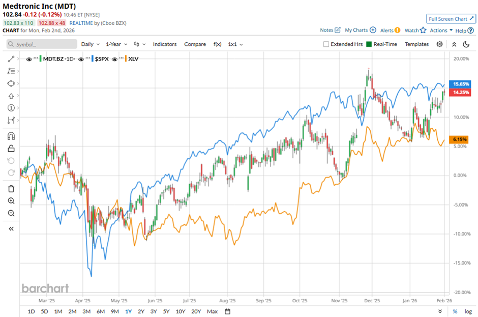 Shares of the Galway, Ireland-based company have lagged behind the broader market over the past 52 weeks. MDT stock has increased 13.5% over this time frame, while the broader S&P 500 Index ($SPX) has gained 15.2%. However, the stock has returned 7.3% on a YTD basis, outpacing SPX's 1.6% rise.
