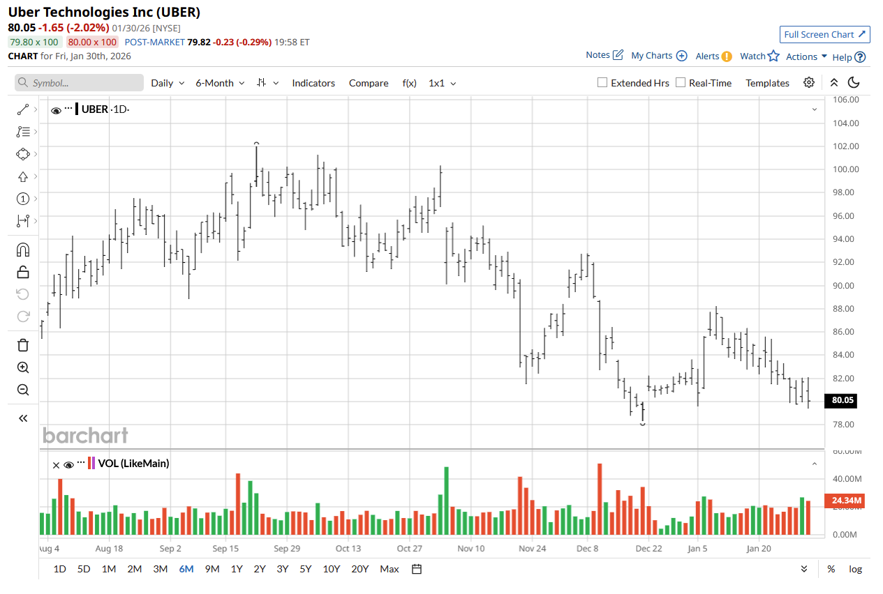 Uber Technologies develops and operates its proprietary technology applications across the world. It is commonly known for its ride-hailing and delivery services, and its name has become synonymous with ride-hailing, much like Alphabet's (GOOG) (GOOGL) Google name became associated with searching for anything online. The firm is headquartered in San Francisco, California.