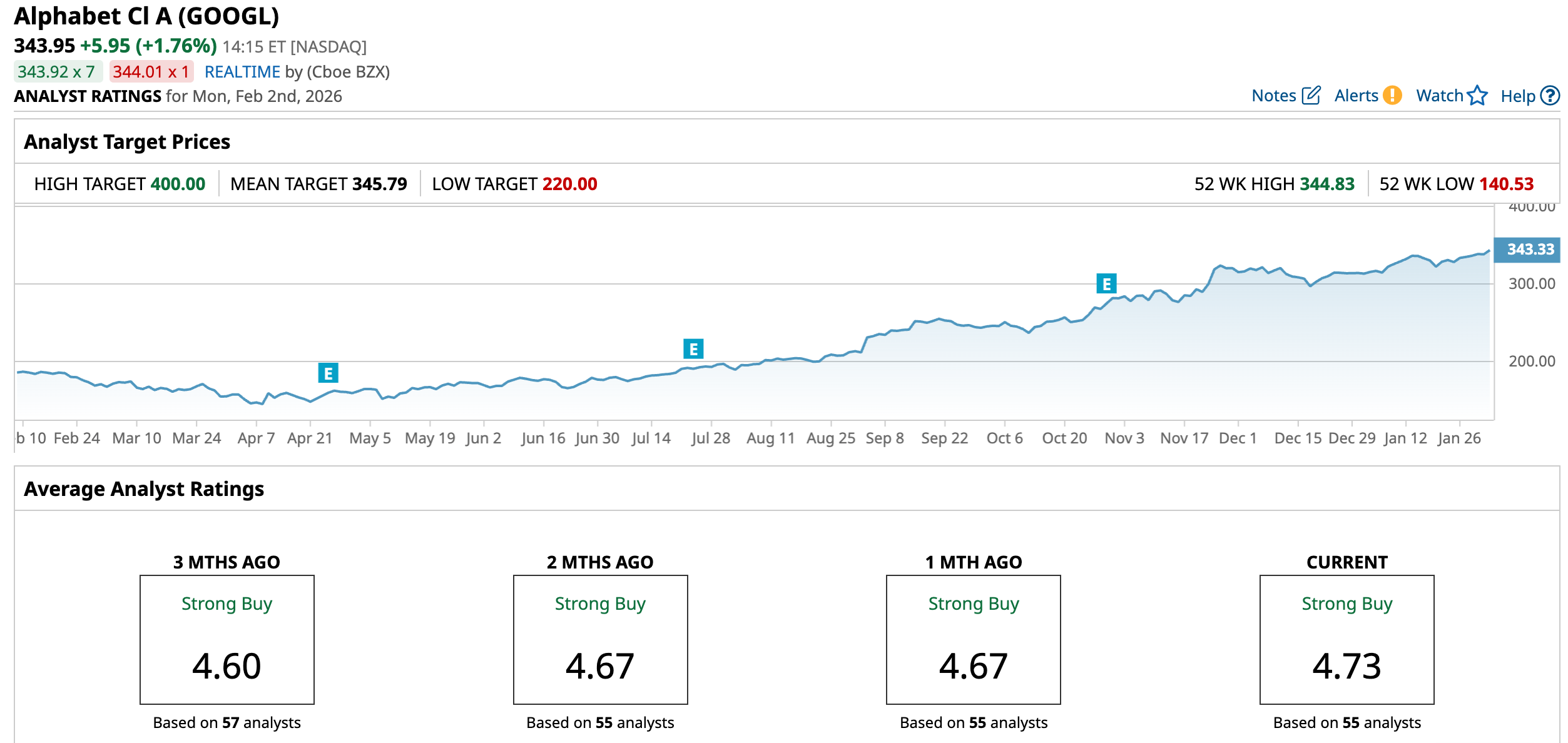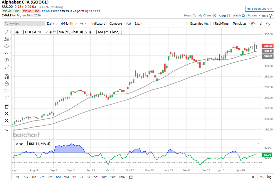 Alphabet (GOOG) (GOOGL) will release its fourth-quarter financial results on Wed., Feb. 4. Heading into the earnings, Alphabet stock has surged 81.35% over the past six months, reaching a fresh high of $344.83 today.