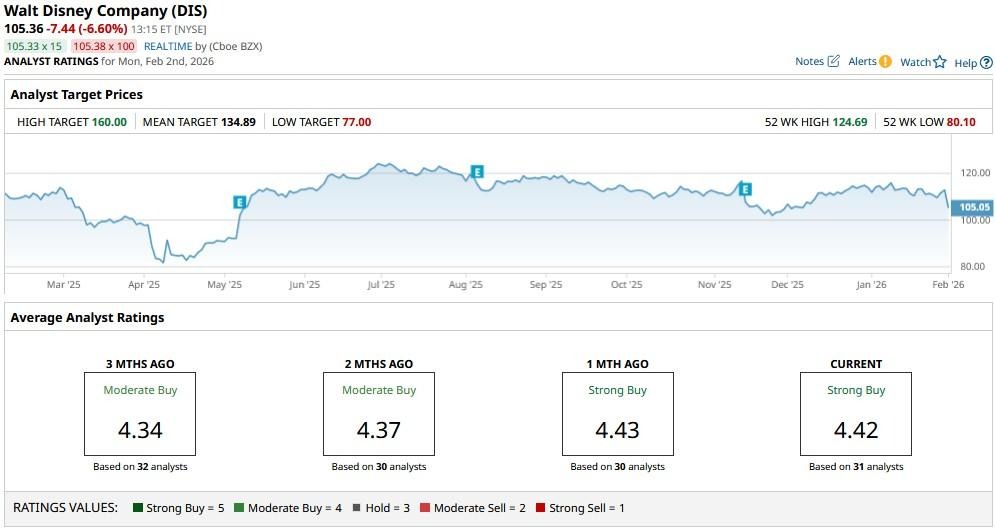 The consensus rating on Disney sits at “Strong Buy” currently, with the mean target of about $135 indicating potential upside of about 29% from here.