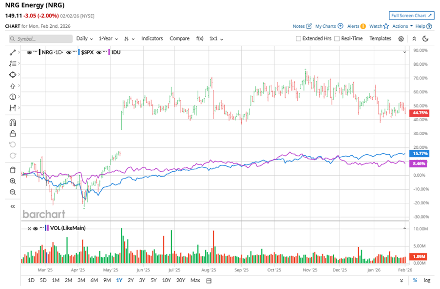 Shares of this leading energy and essential home services platform have outperformed the broader market over the past year. NRG has gained 45.6% over this time frame, while the broader S&P 500 Index ($SPX) has rallied nearly 15.5%. However, in 2026, NRG stock is down 6.4%,compared to the SPX’s 1.9% rise on a YTD basis.