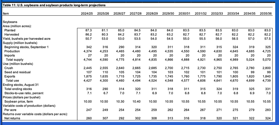Here’s where things start to get interesting, though. If US supply and demand is roughly the same heading into the 2026 planting season as it was last year, what happens if the US plants more acres to soybeans? Recall from last December in its Baseline report, USDA accountants put 2026 US soybean planted area at 85.0 million acres (ma), up 3.8 ma (4.7%) from the 2025 reported figure of 81.2 ma. (Keep in mind the 2025 number was down 6.2 ma (7.0%) from 2024.) The corn number came in at 95.0 ma, down 3.8 ma (3.9%) from 2025. This would mean while the US is expected to have ample supplies carrying over from this marketing year to next, total production would be projected larger than this past year’s reported 4.262 bb.