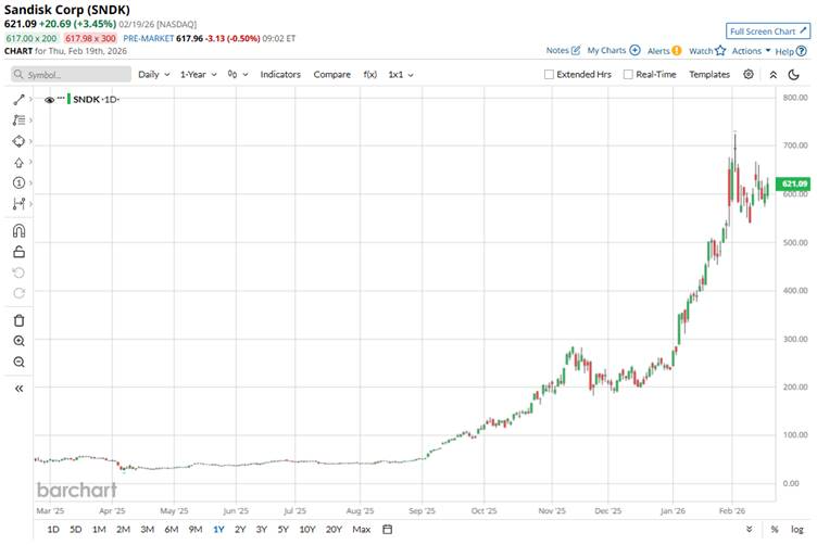 Since its spin-off and listing on the Nasdaq on Feb. 24, 2025, SanDisk’s stock has delivered an extraordinary rally as investor enthusiasm quickly mounted as the company benefited from surging demand for NAND flash memory driven by AI infrastructure and enterprise storage growth.