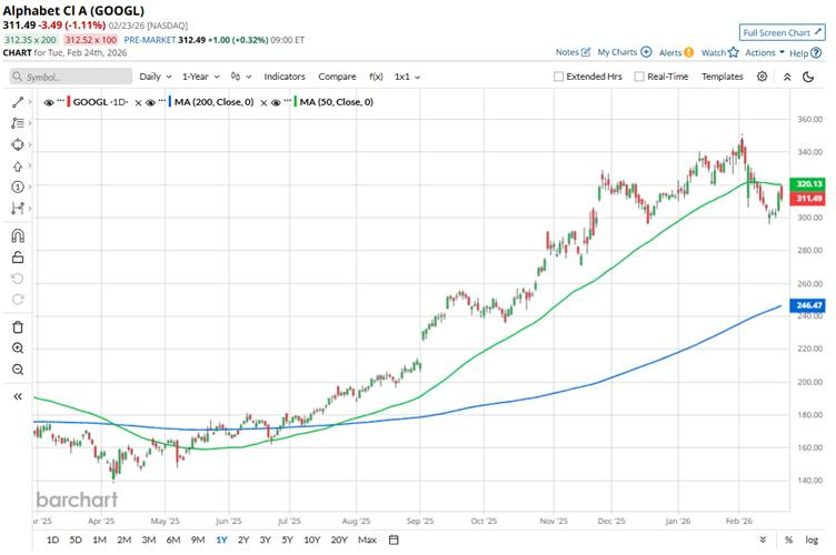 Over the past year, Alphabet’s shares have rallied sharply, driven by a resurgence in earnings growth led by its advertising operations and cloud division, alongside stepped-up investments in artificial intelligence. The company has been channeling significant capital into expanding data center capacity and developing custom AI chips, underscoring its commitment to building out AI infrastructure. However, the stock has recently faced some volatility due to concerns regarding the high costs of its aggressive AI investment strategy.
