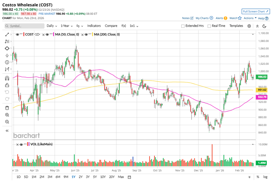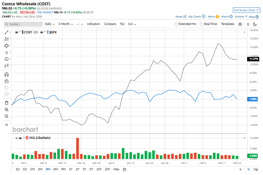Despite its notable strength, Costco has slipped 7.6% from its 52-week high of $1,067.08, achieved on Jun. 3, 2025. Over the past three months, COST stock gained 9.7%, outperforming the S&P 500 Index’s ($SPX) 3.6% gains during the same time frame.