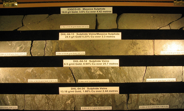 Photo showing typical pyrite > chalcopyrite mineralization at the Lexington deposit.
