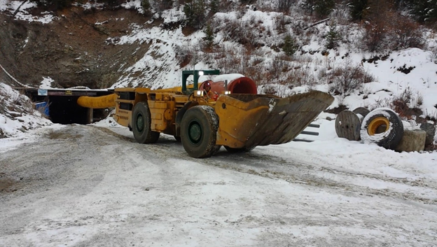 Photo showing scooptram at Lexington mine during de-watering phase.