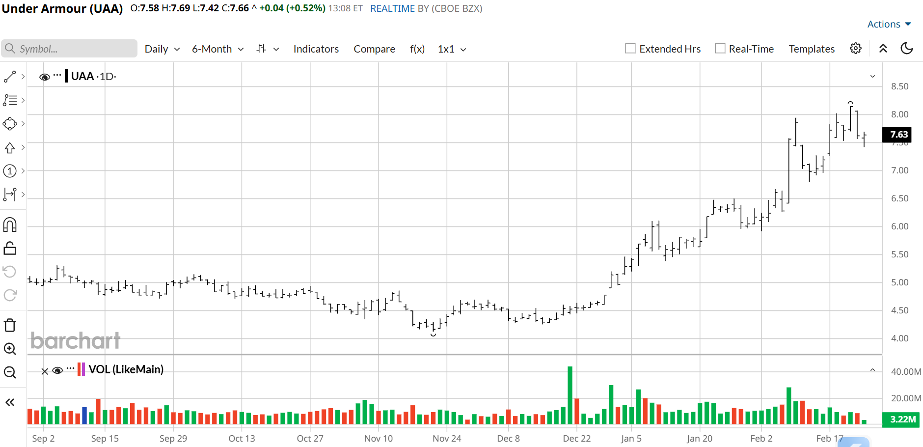 Under Armour (UAA) (UA) has quietly gone from a market afterthought to a market talking point. The stock is up more than 50% over the last six months, upending analyst expectations amid a still-developing corporate turnaround.