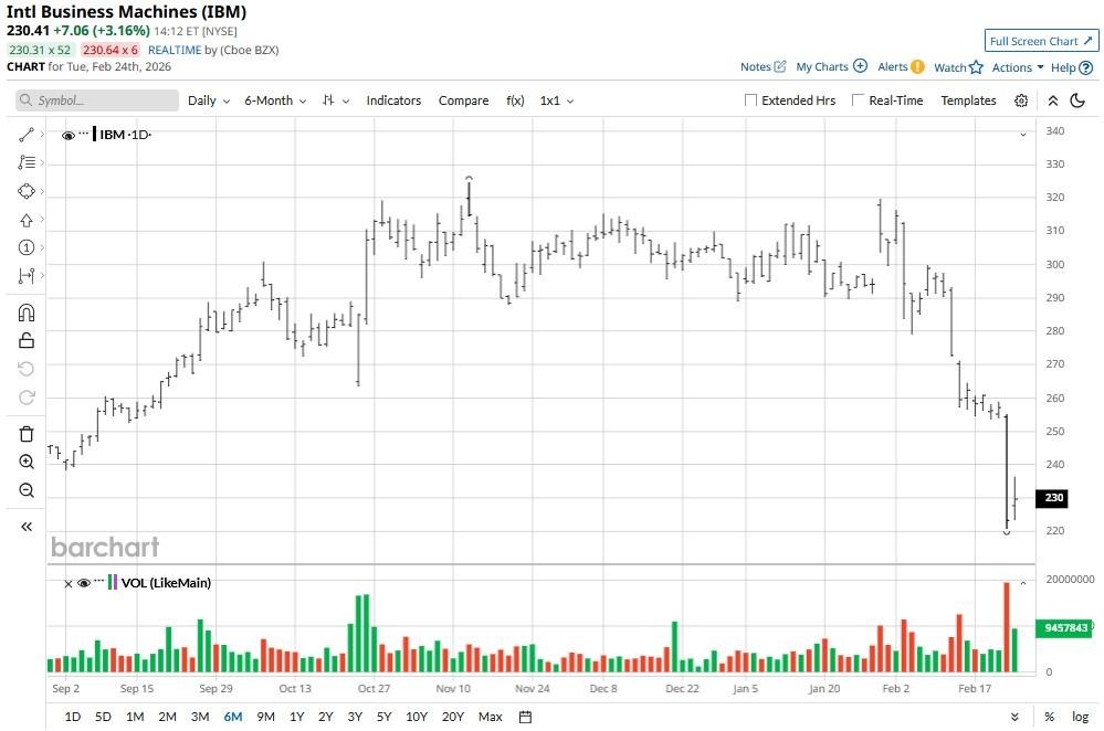 Amid a broader software rout that some experts are now calling a “SaaS-mageddon,” IBM shares have lost as much as 28% this month.