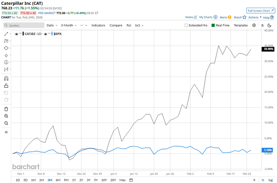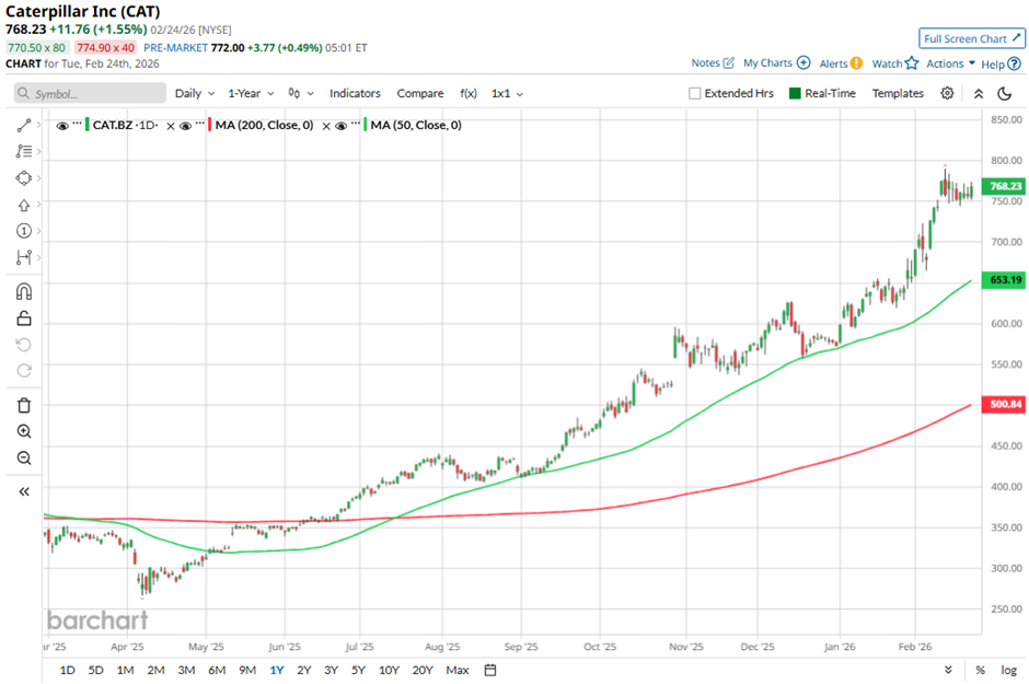 Shares of the Irving, Texas-based company have fallen 2.7% from its 52-week high of $789.81. Caterpillar’s shares have increased 37.3% over the past three months, outpacing the broader S&P 500 Index’s ($SPX) 2.8% gain over the same time frame.
