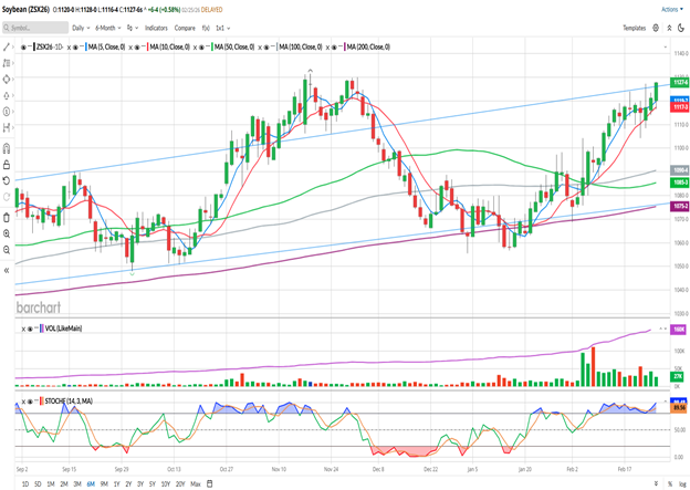 February is also the month that is used to determine insurance prices in Corn and Beans for the upcoming crop year. If the month ended today (it doesn’t, there are still 2 more trading days) this year’s Soybean insurance price would be at $11.04 ¼, which is roughly a 50-cent improvement over 2025’s $10.52 ½.
