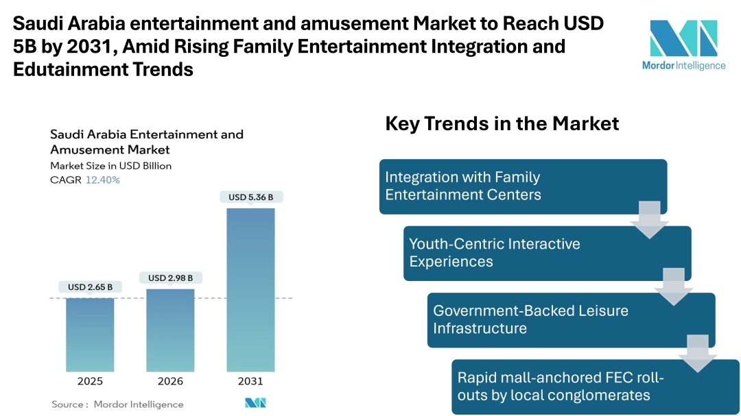 According to Mordor Intelligence, in 2026, the Saudi Arabia Entertainment and Amusement Market is estimated at USD 2.98 billion, growing from USD 2.65 billion in 2025 and projected to reach USD 5.36 billion by 2031, registering a CAGR of 12.4%. This environment creates parallel momentum for the industry, especially within family entertainment centers and youth-focused venues. The market is increasingly aligning with broader leisure and amusement infrastructure, particularly as interactive and edutainment-driven attractions gain ground in destination-based entertainment hubs.