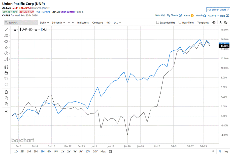 UNP stock touched its 52-week high of $267.88 just yesterday before pulling back slightly. The stock surged 15.3% over the past three months, slightly underperforming the State Street Industrial Select Sector SPDR ETF’s (XLI) 15.6% rise during the same time frame.