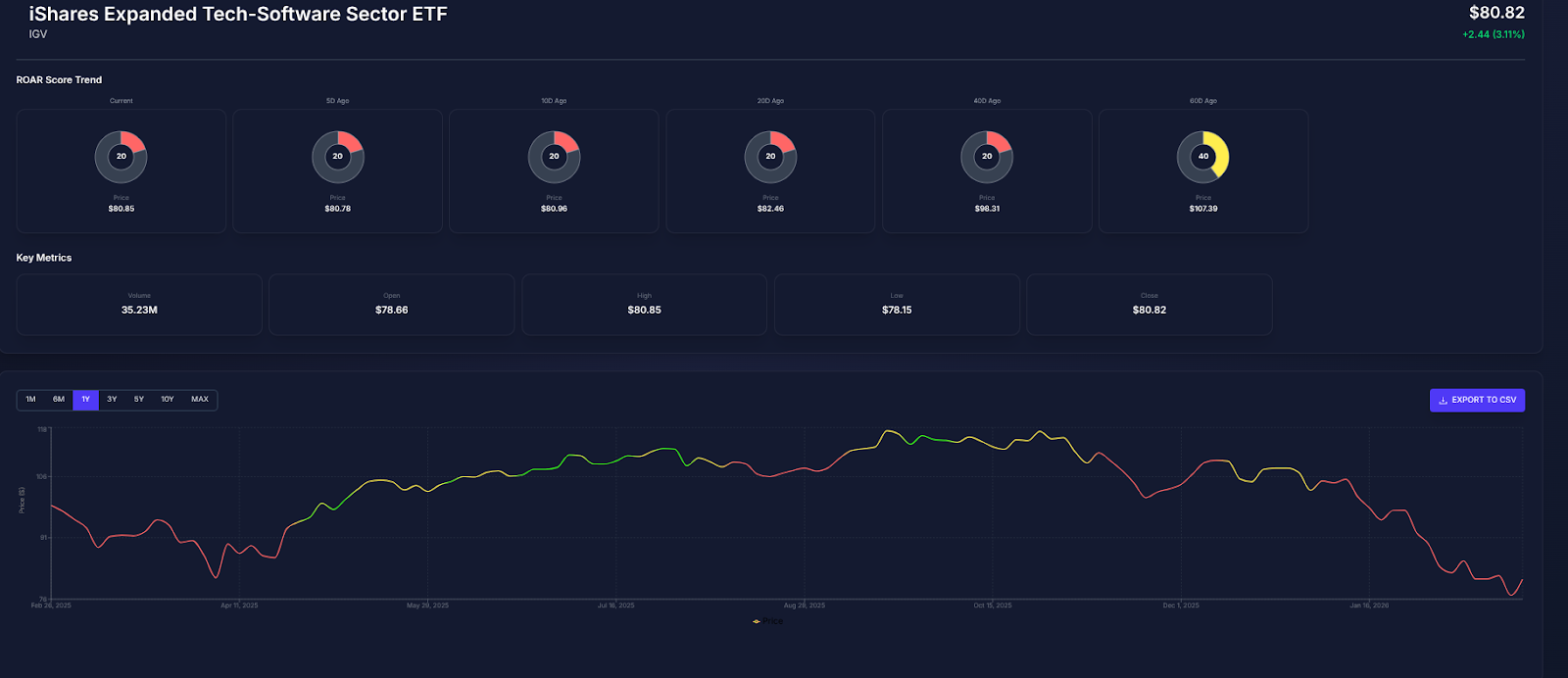 Wednesday’s bounce was a relief for IGV holders. But the ROAR analysis above indicates 2 things to me.