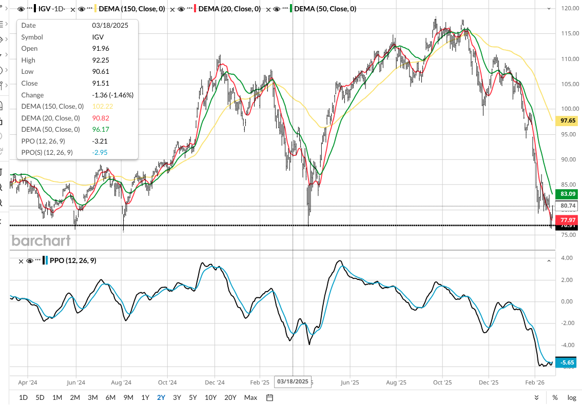 Nvidia’s (NVDA) fourth-quarter earnings report, released Wednesday after market close, leaves the software sector at a critical crossroads. While Nvidia, the largest company on the planet by market capitalization, has once again demonstrated its dominance in AI infrastructure, the iShares Expanded Tech-Software Sector ETF (IGV) continues to struggle.