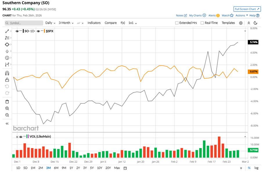 Despite its notable strength, SO slipped 4.5% from its 52-week high of $100.84, achieved on Oct. 16, 2025. Over the past three months, SO stock has gained 6.8%, outperforming the S&P 500 Index’s ($SPX) 1.4% gains during the same time frame.