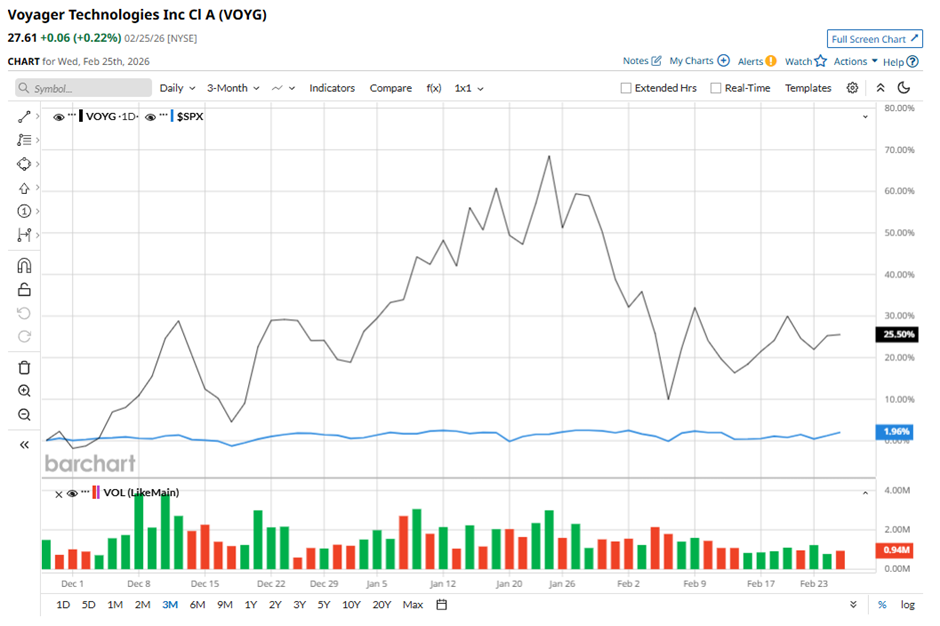 Now standing at a market capitalization of roughly $1.5 billion, Voyager Technologies has been quietly outperforming the broader market. Over the past three months, the stock has climbed nearly 30.3%, sharply ahead of the broader S&P 500 Index’s ($SPX) modest 1.4% gain during the same period. So far in 2026, VOYG is holding onto positive momentum, rising about 9.64% year-to-date (YTD).