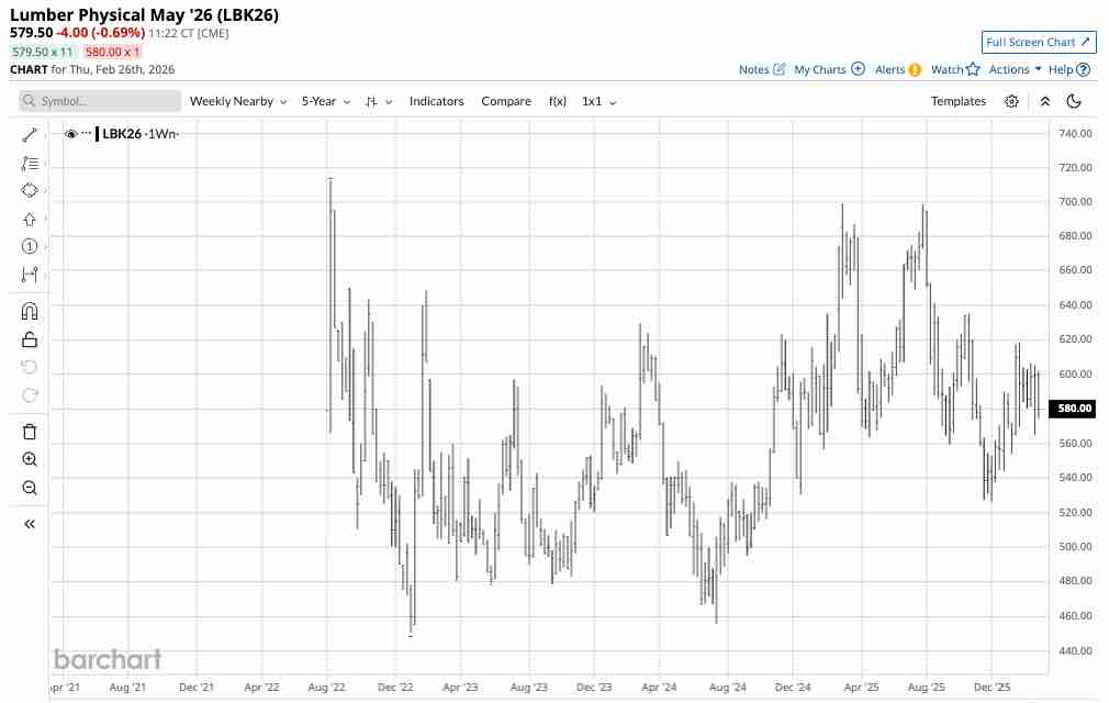 I concluded a January 30, 2026, Barchart article on the lumber futures market with the following: