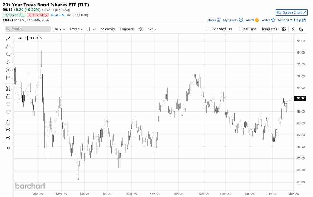 The iShares 20+ Year Treasury Bond ETF (TLT) tracks the price of long-term U.S. government bonds that determine 30-year fixed-rate mortgage rates.