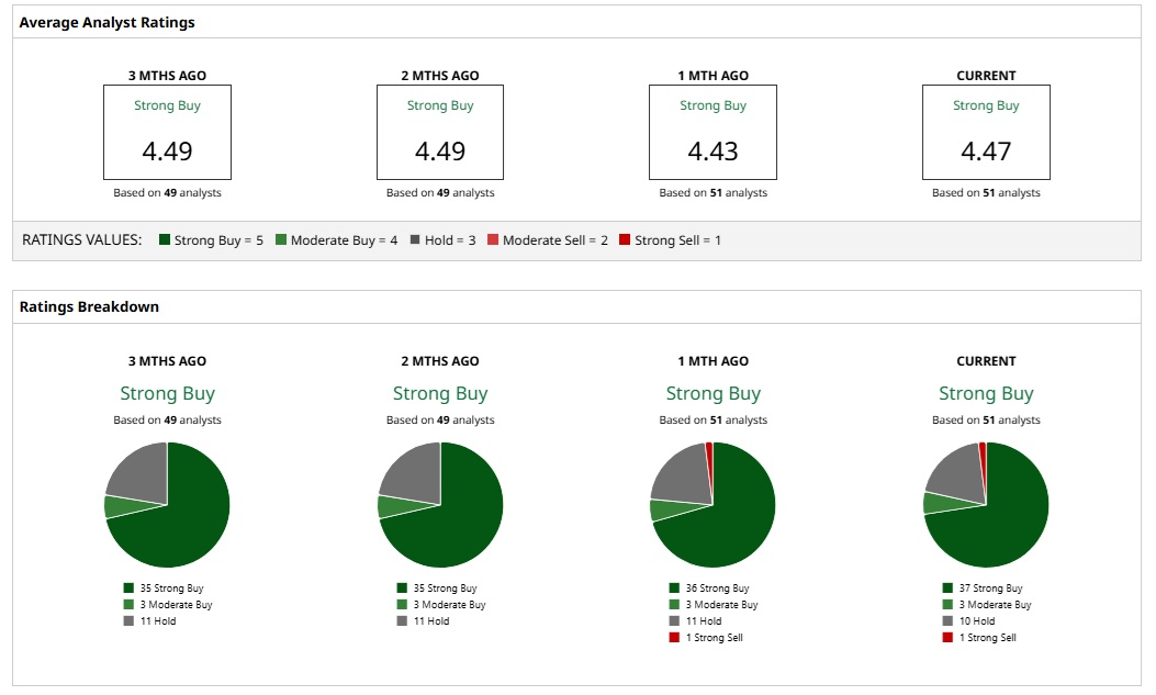 Given the ratings of 51 analysts, UBER stock is a consensus “Strong Buy.” While 37 analysts assign a “Strong Buy” rating to UBER, three analysts opine that the stock is a “Moderate Buy.” Further, 10 analysts believe that the stock is a “Hold.” Finally, on the bearish side, one analyst has a “Strong Sell” rating.