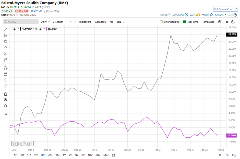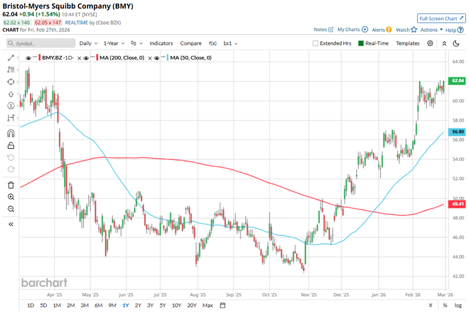 Shares of Bristol-Myers Squibb rose 3.3% on Feb. 5 after the company forecast 2026 revenue of $46 billion - $47.5 billion, well above Wall Street expectations, and projected adjusted EPS of $6.05 - $6.35, topping the consensus estimate. Investors were encouraged by management’s outlook that Eliquis revenue will grow 10% - 15% in 2026, despite Medicare price negotiations, as strategic price cuts help avoid inflation-related penalties and support volumes for the blockbuster blood thinner sold with Pfizer.