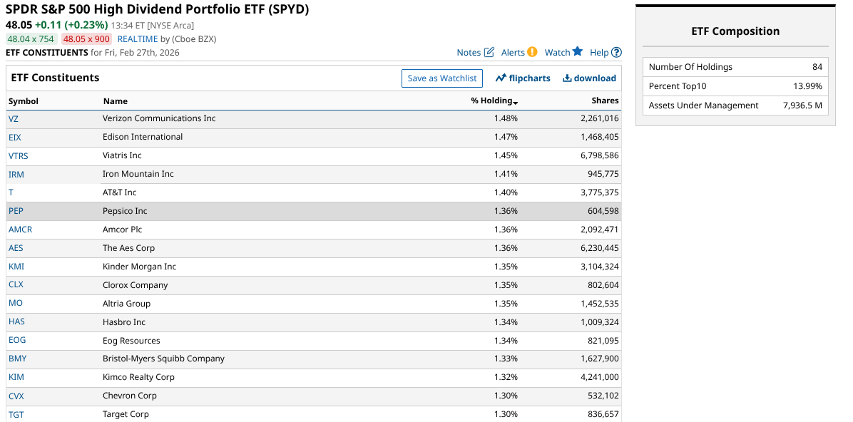 The bear case, however, highlights the specific risks inherent in a yield-only selection process. Because SPYD only looks at the absolute dividend yield, it often inadvertently picks up “yield traps.” Those are companies whose yields are high only because their stock prices have plummeted due to deteriorating fundamentals.