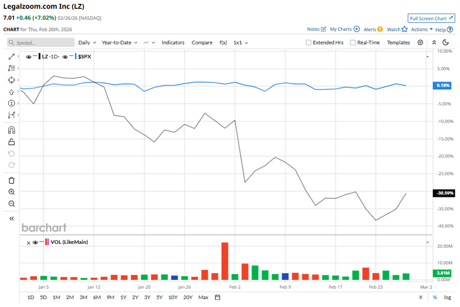 The last few weeks have felt like a roller coaster for software and cybersecurity stocks. When Anthropic rolled out new artificial intelligence (AI) tools through its Claude model in late January, investors quickly began questioning which companies might get disrupted next. LegalZoom.com (LZ) didn’t escape the panic. Fears that AI could upend traditional legal workflows sent the stock tumbling in early 2026, as the market braced for change. But the story did not end there.