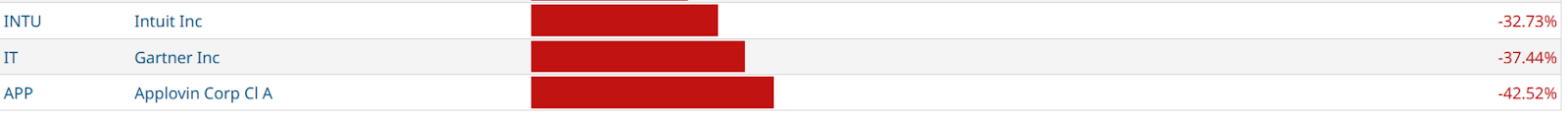 Intuit (INTU) represents that group of tech stocks that have already been hung out to dry by investors. Nearly cut in half since its August 2025 top, I don’t see this train stopping on a dime. Because trains can’t do that, nor are software stocks bound to, beyond a bounce.