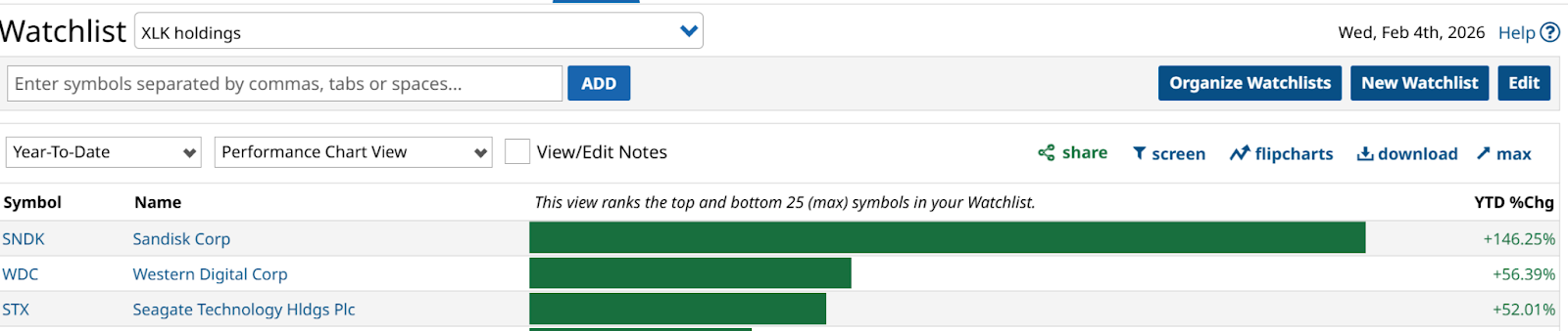 The S&P 500 Technology Sector SPDR (XLK) is the primary lens through which the market views the tech heavyweights of the S&P 500 Index ($SPX). After a fine start to 2026, XLK, which tracks the roughly 70 tech stocks within the S&P 500, has pulled back. In the case of some of its components, quite severely.