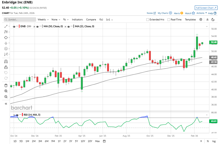 Looking ahead, Enbridge’s diversified, high-quality assets position it well to continue growing its dividend. Notably, in Liquids Pipelines, the company’s network remains a critical link between production basins and refinery hubs, supporting high system utilization. In Gas Transmission, Enbridge is expanding pipelines and storage capacity to meet structural demand drivers, including LNG export growth, gas-fired power generation, data center expansion, coal-to-gas switching, electrification, and the reshoring of industrial activity. These investments are backed by regulated or contracted frameworks, supporting the predictable returns.