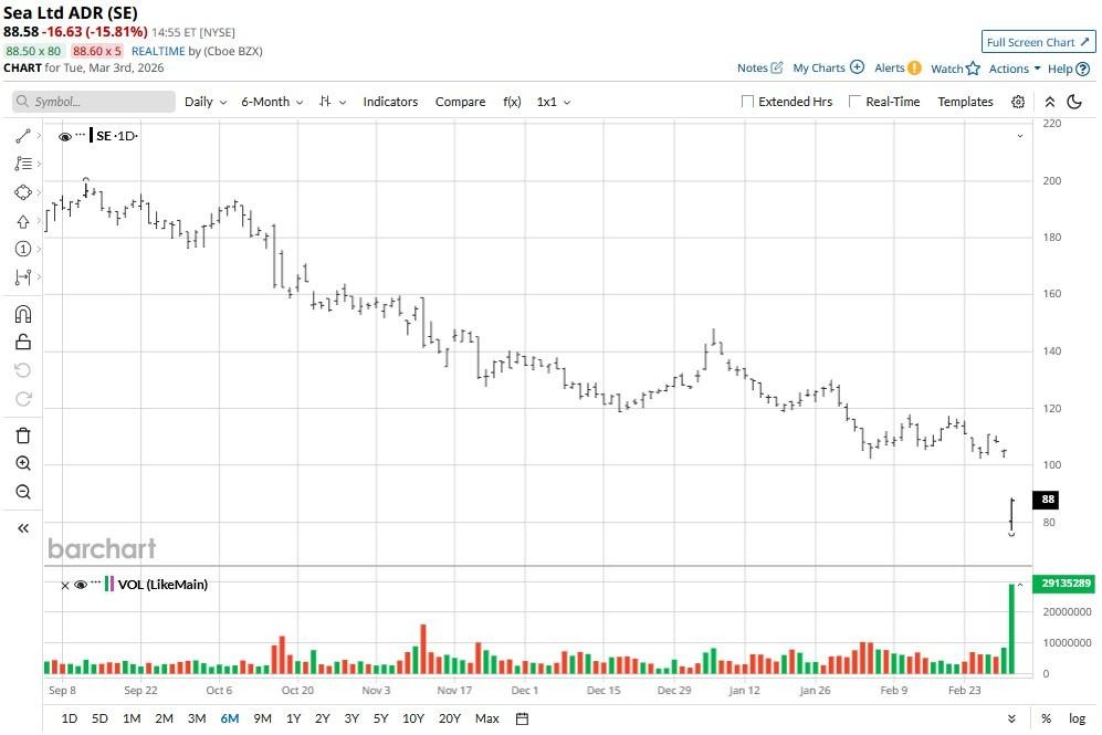 Long-term investors should consider loading up on Sea stock also because, down some 40% versus its year-to-date high, it’s no longer an expensive name to own in 2026.