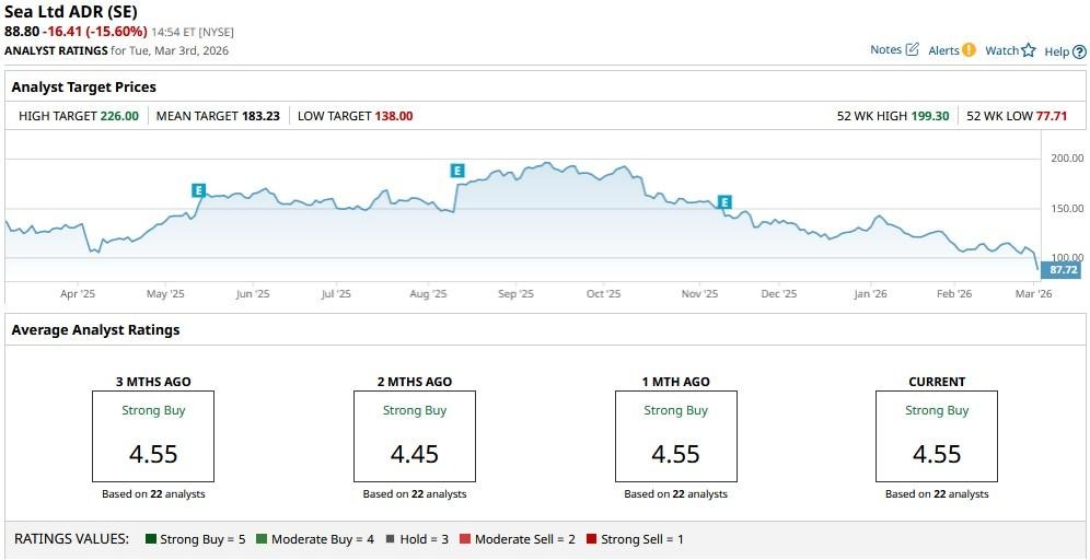 The consensus rating on Sea Limited sits at “Strong Buy” currently with the mean target of roughly $183 suggests the stock could more than double from here over the next 12 months.