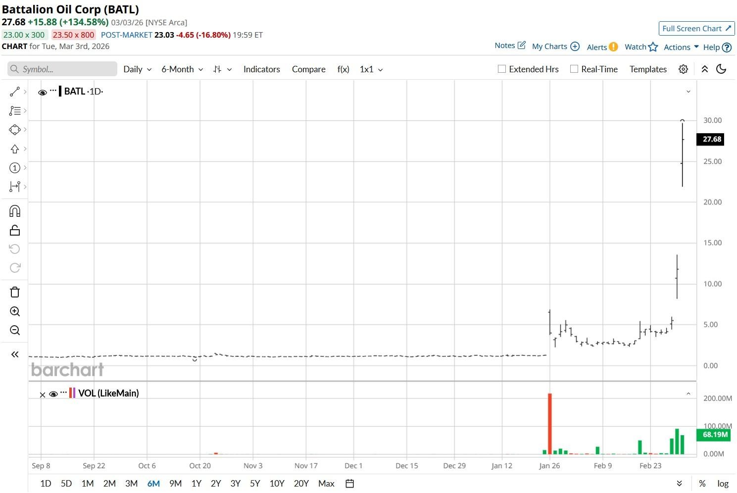 BATL shares have had a meteoric run in recent sessions as the escalating U.S.-Iran conflict raised retail and institutional interest in independent producers with no exposure in the Middle East.Â