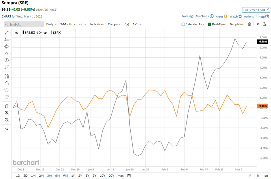 SRE stock is up 8% on a YTD basis, outpacing SPX's marginal rise. Longer term, shares of Sempra have surged 35.1% over the past 52 weeks, compared to the 18.9% return of the SPX over the same time frame.