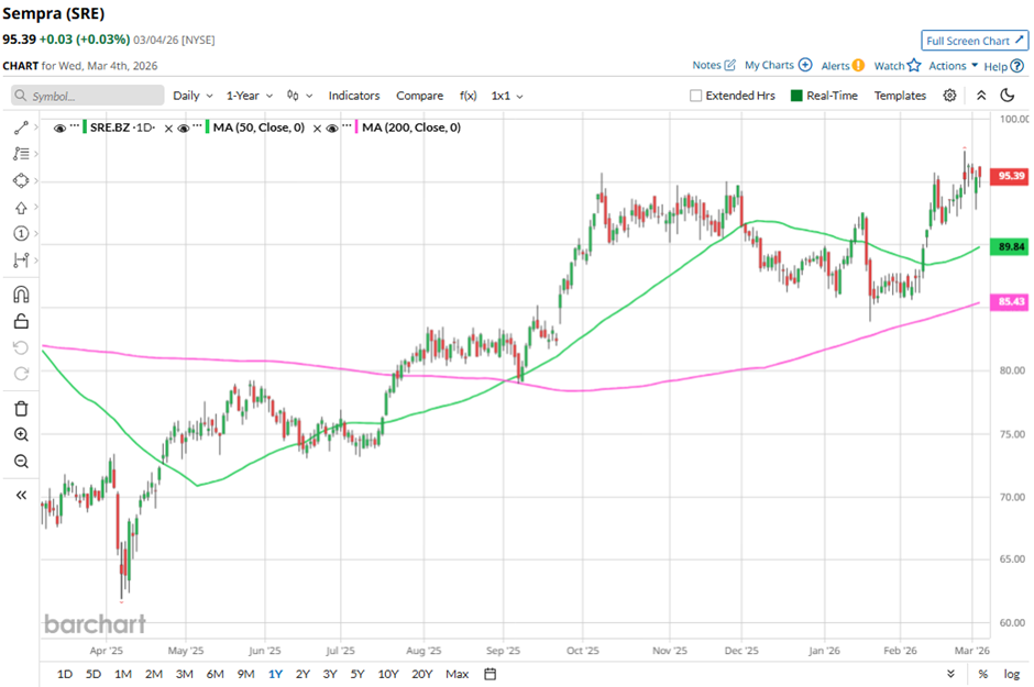 With a market cap of $62.3 billion, Sempra (SRE) operates regulated utilities and energy infrastructure across the United States and Mexico. The company runs its business through three main segments: Sempra California; Sempra Texas Utilities; and Sempra Infrastructure, providing natural gas, electricity transmission and distribution, and energy infrastructure services.