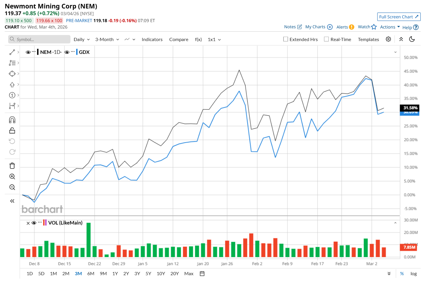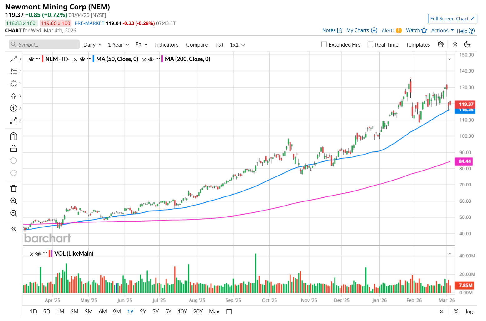 On Mar. 3, global stock markets reacted negatively to rising crude oil prices and surging bond yields amid escalating tensions in the Iran conflict, which entered its fourth day without any signs of de-escalation. The growing risk of prolonged disruptions in energy markets has intensified fears of higher inflation. At the same time, mining stocks, including NEM, declined sharply as precious metal prices dropped, with gold falling more than 4% and silver declining over 7%, putting significant pressure on companies involved in gold and silver production.