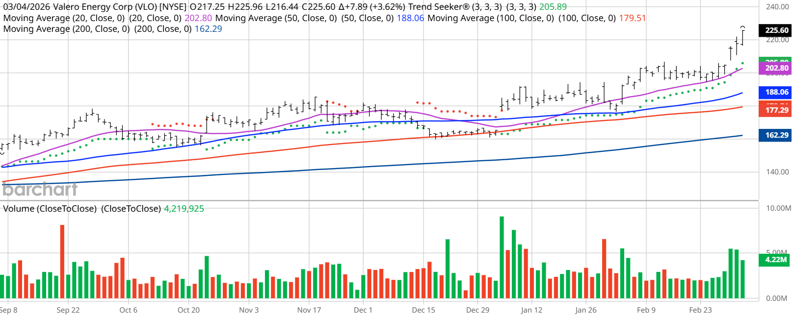 Barchart Technical Indicators for Valero Energy